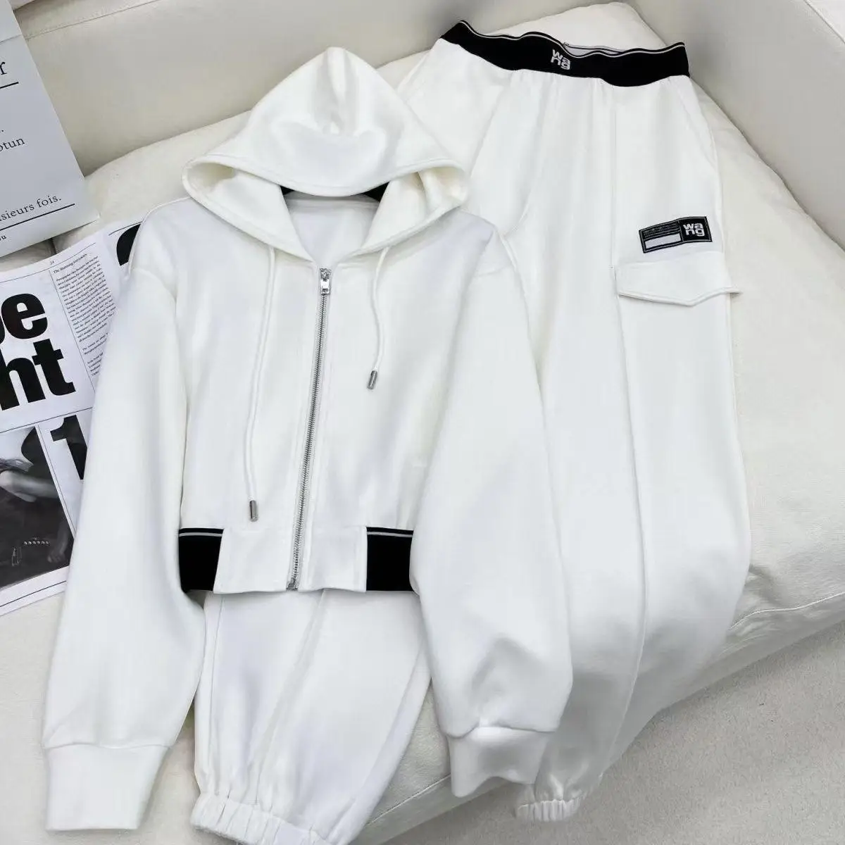The heavyweight, plush fleece interior offers a sanctuary of warmth, while the minimalist, monochromatic exterior projects a razor-sharp silhouette. The hoodie features a structured hood, a roomy kangaroo pocket, and subtle brand detailing for that signature Wang authenticity. The matching trousers boast a relaxed yet tailored fit with ribbed cuffs for a clean, finished ankle.