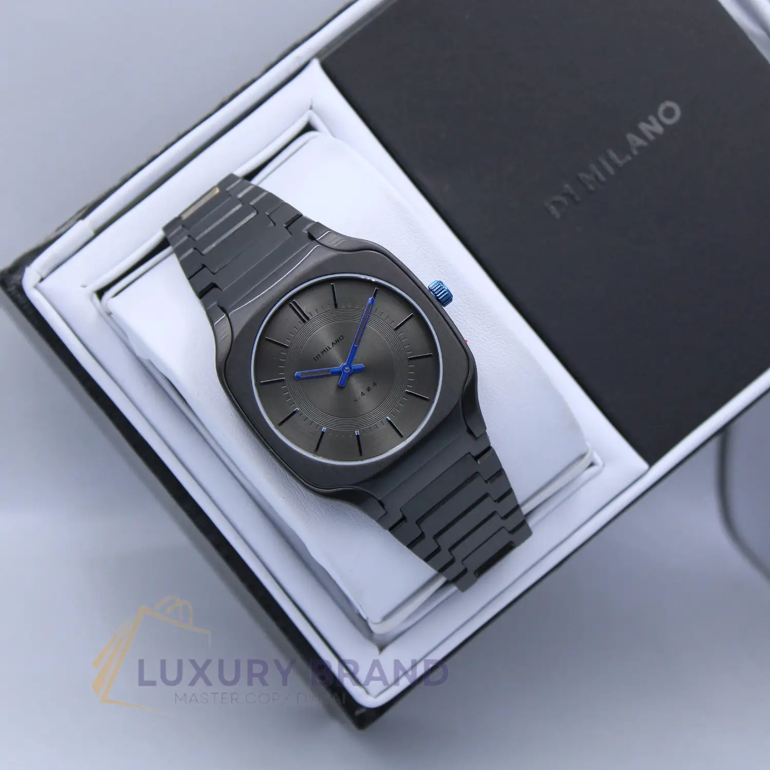 Crafted from 316L hypoallergenic stainless steel, the watch is remarkably lightweight and durable. The case features D1 Milano’s signature clean, geometric lines, creating a bold architectural silhouette on the wrist. It is paired with a matching premium Milanese mesh strap—infinitely adjustable for a seamless, custom fit that feels as good as it looks.