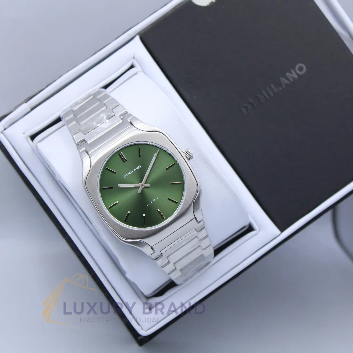 Crafted from 316L hypoallergenic stainless steel, the watch is remarkably lightweight and durable. The case features D1 Milano’s signature clean, geometric lines, creating a bold architectural silhouette on the wrist. It is paired with a matching premium Milanese mesh strap—infinitely adjustable for a seamless, custom fit that feels as good as it looks.