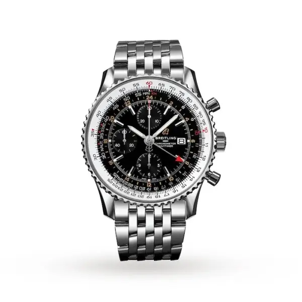 Code:A24322121B2A1 WATER RESISTANT:yes WATCH MARKERS:Batons STRAP MATERIAL:Stainless Steel Gender:Men MOVEMENT:Automatic DIAL COLOUR:Black CASE MATERIAL:Stainless Steel COLLECTIONS:Navitimer Diameter:46mm